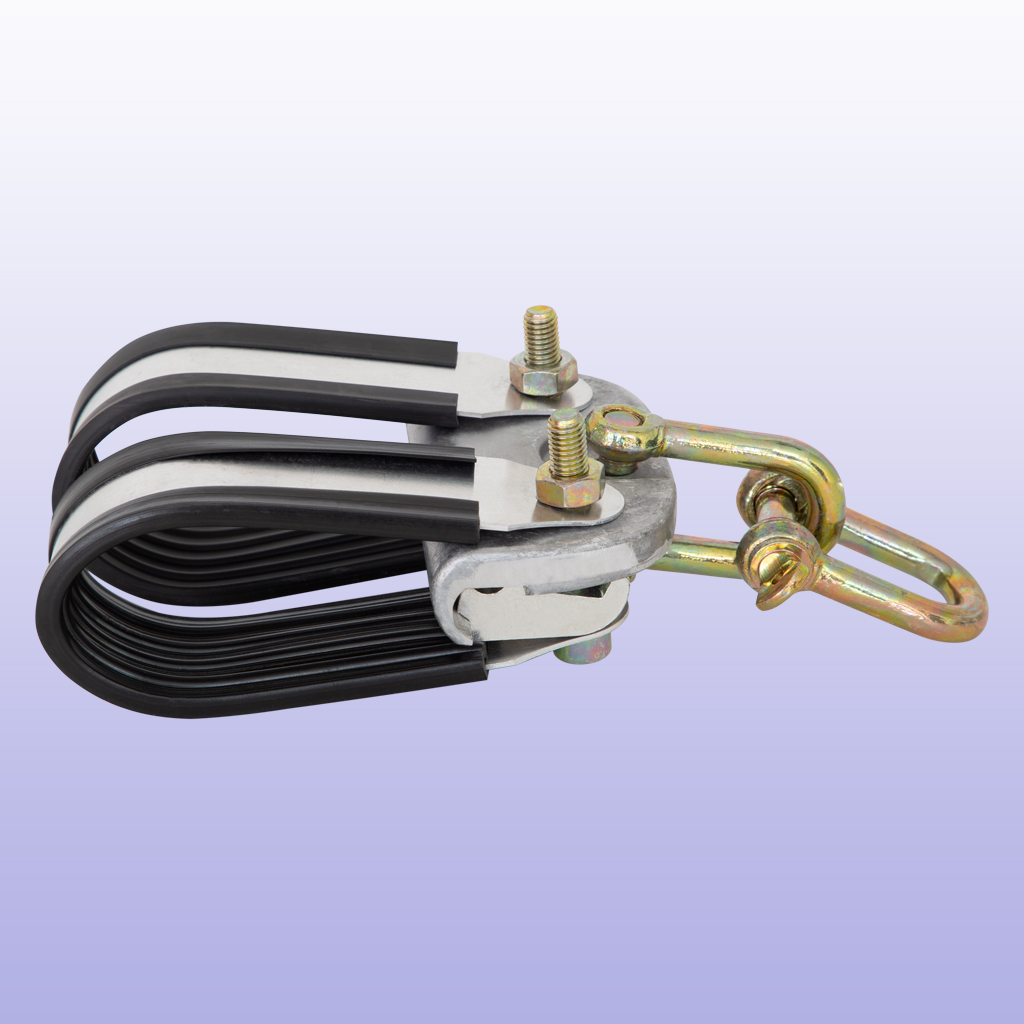 - اين کلمپ جهت مهار کابل هاي خودنگهدار فشار متوسط همراه با پيچ دم خوکي بر روي پايه نصب مي گردد .