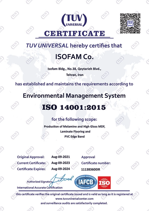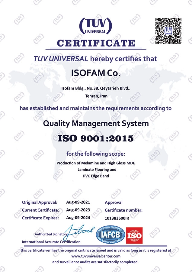 With a commitment to exceptional product quality and continuous improvement, Isofam rapidly grew its market presence and added a second production line — tripling its manufacturing capacity. Today, Isofam proudly holds two national Iranian standard certifications for its melamine-faced MDF and particleboard products.